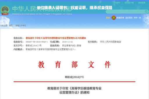 单位继承人证明书是一种证明文件,用于证明某人在单位内的继承权利,在财产传承过程中,特别是涉及单位房产、存款、公积金等财产时,继承人需要凭借此证明书来行使继承权,办理相关手续。