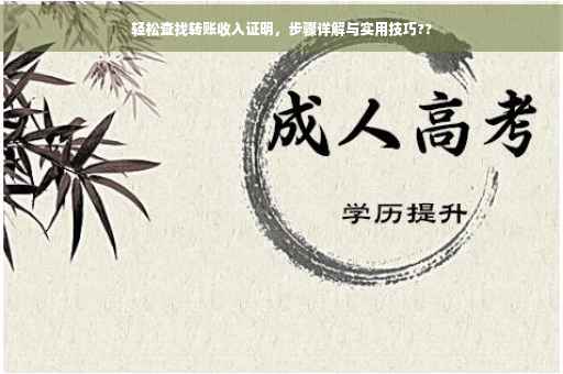 摘要:想要轻松查找转账收入证明?只需遵循几个详细步骤和实用技巧。确定证明需求,如金额、时间等。登录银行或支付平台账户,进入交易记录或流水页面。筛选日期和关键词,快速定位转账记录。如需纸质证明,可下载或打印相关交易记录。掌握保存和管理电子证据的实用技巧,如定期备份和分类整理。这些步骤将帮助你高效获取转账收入证明。