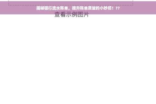 在当今社会,银行流水账单已经成为评估个人经济状况的重要依据之一,无论是办理信用卡、申请贷款还是进行投资理财,银行流水账单都是不可忽视的一环,如何提升银行流水账单的质量,让它在关键时刻成为你的“经济名片”?本文将为你揭示其中的秘诀。