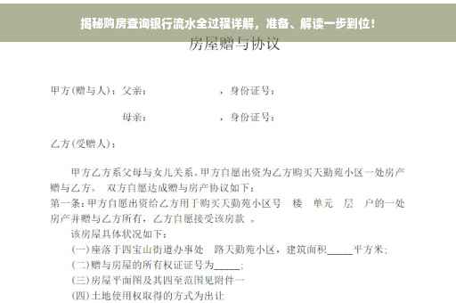 在当下火热的房地产市场,购房已成为众多人的重要生活事件,在购房过程中,银行流水查询是不可或缺的一环,银行流水能够真实反映一个人的经济状况,帮助贷款机构准确评估贷款人的还款能力,本文将详细解读购房查询银行流水的全过程,助您从准备到解读,轻松搞定!