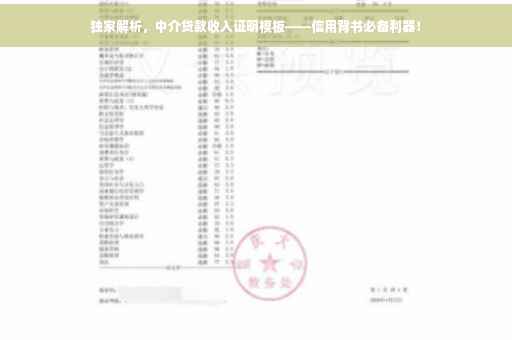 摘要:,,本文旨在全面解读中介贷款收入证明模板,通过深入分析该模板的结构和内容,帮助读者了解如何利用这一专业信用背书利器。该模板作为贷款申请过程中的重要证明材料,对于提升信用评级和贷款申请成功率具有关键作用。本文将指导读者如何正确填写和使用收入证明模板,以展现个人经济实力和信用状况,从而顺利获得贷款。
