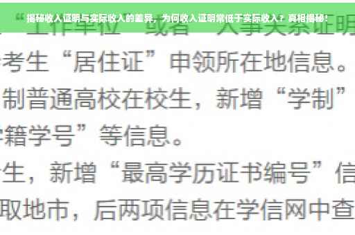随着社会的快速发展,个人收入问题愈发受到广泛关注,在求职、贷款等关键时刻,收入证明成为衡量我们经济状况的重要凭证,但很多人发现,手中的收入证明上的数字往往不及实际到手的收入多,这其中究竟隐藏着怎样的秘密呢?我们就来一起深入探讨这一话题。
