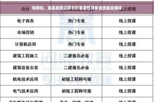 随着电动汽车行业的飞速发展,特斯拉成为了其中的佼佼者,在购车、保险、金融等各个环节中,特斯拉直系亲属证明书逐渐凸显出其重要性,本文将详细介绍特斯拉直系亲属证明书的作用、申请流程以及注意事项,帮助广大消费者更好地了解和运用这一证明文件。
