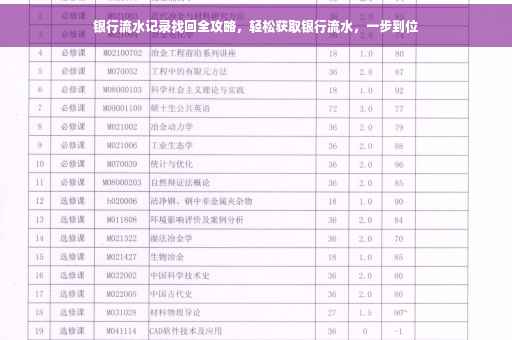 在现代社会,银行流水记录对于个人财务管理、企业运营以及法律诉讼等方面都具有重要意义,由于各种原因,我们可能会遗失这些宝贵的记录,当银行流水记录丢失时,我们该如何找回呢?本文将为您提供详细的找回方法,助您轻松获取银行流水记录。