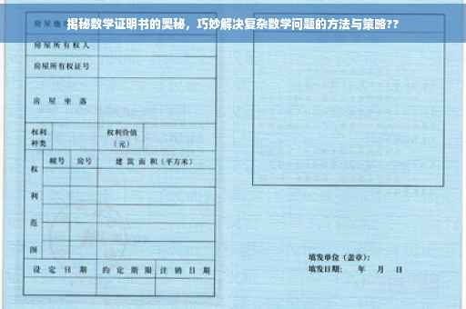 在数学的广阔海洋中,我们常常会遇到一些看似复杂无比的问题,它们如同迷宫一般让人捉摸不透,这时,数学证明书作为一种强大的工具,它的出现如同一盏明灯,指引我们找到问题的解决方案,本文将带领大家深入了解数学证明书的奥秘,探讨如何巧妙运用数学证明书解决复杂数学问题,让我们一起走进这个充满智慧的世界,探寻数学证明书的无尽魅力。