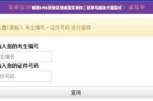 据报道,一位毕业生选择通过邮政EMS寄递自己的毕业证至目的地,不幸的是,这位毕业生遭遇了毕业证遗失的尴尬局面,这一事件不仅引发了人们对邮政EMS服务质量的质疑,也让人们在寄递重要证件时的安全问题产生了深深的担忧。
