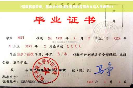 3、梦境的解读:毕业证丢失的梦境可能意味着我们正处于人生的关键阶段,面临着诸多挑战和机遇,我们可能正在思考未来规划、职业发展等问题,这个梦境提醒我们要勇敢面对生活中的挑战,相信自己的能力和潜力。