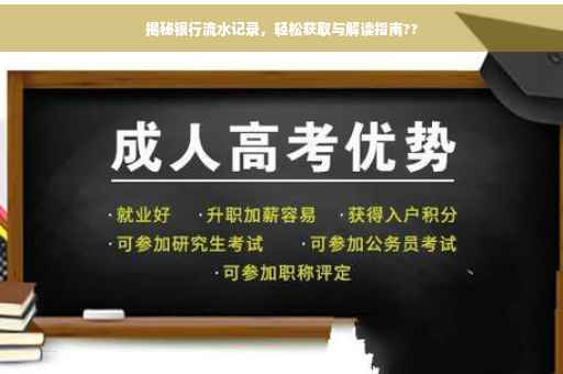 摘要:本文将为你揭秘银行流水的获取与解读方法。通过简单的步骤,轻松获取你的银行流水记录。了解如何解读这些记录,包括收入、支出、存款、取款等各项信息,帮助你更好地掌握个人财务状况,合理规划资金,让你的财务生活更加轻松透明。