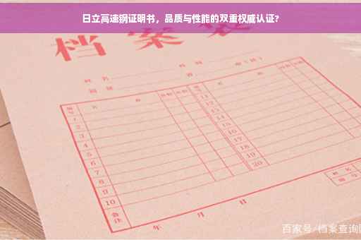 在当今工业领域,高速钢作为一种重要的金属材料,广泛应用于切削、刀具制造等关键工艺,日立作为一个知名的金属材料制造商,其生产的高速钢产品在市场上备受关注,为了确保产品的品质与性能,日立高速钢证明书应运而生,本文将详细介绍日立高速钢证明书的相关内容,带您了解这份证明书的重要性及背后所代表的品质保证。