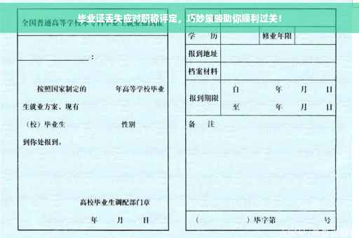 摘要:面对毕业证丢失的问题,在职称评定时,可巧妙采取多种策略应对。及时报告学校或相关机构,获取丢失证明和复印件。提供其他相关证明材料,如成绩单、获奖证书等,展现学术成果和专业能力。积极展示工作经历和业绩,以实际表现证明自身实力。保持冷静,灵活应对,充分展示个人综合素质,有助于在职称评定中取得优势。