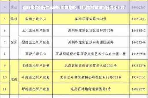 本文将探讨影响银行流水的因素及策略。通过解析不同因素,包括个人消费行为、企业运营状况等,来探讨如何增加银行流水。介绍一些有效的策略,如合理规划个人财务、优化企业运营等,以提高银行流水。本文旨在帮助读者了解银行流水的重要性及如何有效改善流水状况。摘要字数控制在100-200字以内。