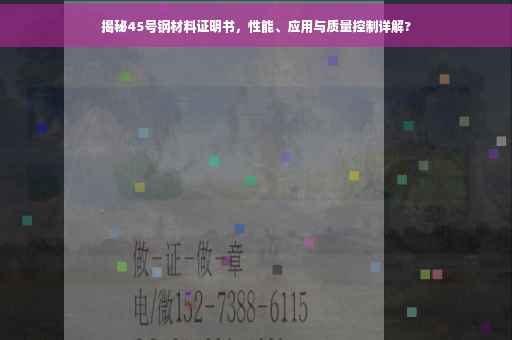 摘要:本文将为您揭秘关于45号钢材料证明书的内容,包括其性能特点、应用领域以及质量控制措施。这种钢材具有良好的强度和韧性,广泛应用于机械制造、汽车、桥梁等产业。通过阅读本文,您将了解如何识别优质的45号钢材料,以及如何在实际应用中确保其质量和性能的稳定,以确保工程安全和使用寿命。