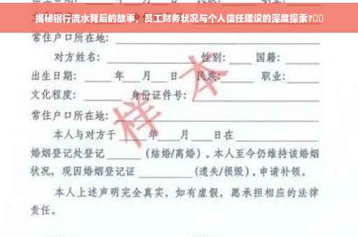 摘要:,,本文将揭示员工银行流水背后的故事,探究其在面试中反映的真实财务状况以及个人信任建设的重要性。通过深入了解员工的银行流水,企业能够更准确地评估其经济实力、稳定性和风险管理能力,从而建立更加稳固的雇佣关系。这也体现了个人信任在职业发展中的关键作用。本文将引导读者理解如何通过银行流水展现个人价值,以及在面试中如何妥善应对财务状况的披露。