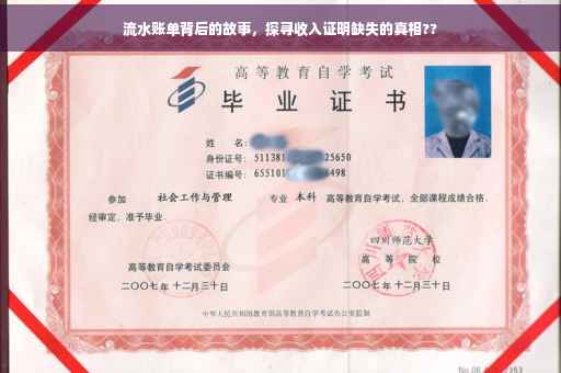 摘要:一份流水账单揭示了一个关于收入证明缺失的真相背后的故事。这份账单似乎暗示着某种经济活动的缺失,引发了人们对收入真实性的质疑。背后的故事可能是关于个人经济状况的不透明性,或者是财务记录的疏忽。这个故事引发了人们对财务透明度的关注和思考。