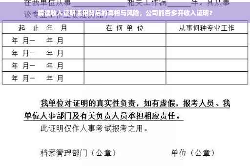 在当今社会,随着就业市场的日益竞争和职场需求的多样化,许多人在寻求职业机会时可能会遇到各种特殊需求,其中之一便是收入证明,公司可以多开收入证明吗?本文将围绕这一问题展开讨论,带您深入了解背后的真相与潜在风险。