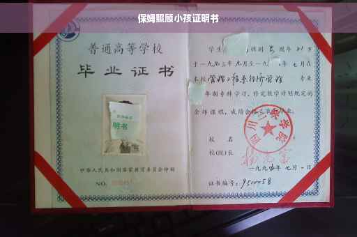 以下是一个简单的请保姆照顾小孩证明书的实例: