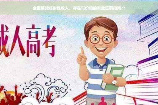 在现代社会中,临时性收入作为一个经济现象越来越普遍,它可能源于多种原因,如加班工资、奖金、津贴等,对于个人而言,了解和证明临时性收入的存在与价值至关重要,本文将详细介绍如何证明临时性收入的存在,并分析其重要性。
