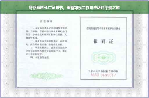 在现代社会,越来越多的人开始关注工作与生活的平衡问题,辞职理由死亡证明书作为一个颇具争议的话题,引发了广泛讨论,本文将深入探讨这一现象背后的原因,分析其对个人和社会的影响,并探讨如何在实际工作中寻求更好的平衡。