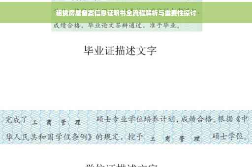 摘要:,,租赁房屋备案信息证明书对于保障租赁双方的权益至关重要。本文简要解析了租赁房屋备案的重要性,包括其法律效应和保障租赁双方权益的作用。详细阐述了租赁房屋备案的具体流程,包括提交材料、登记申请、审核及领取备案证明等步骤。通过本文,读者可以全面了解租赁房屋备案的流程及其重要性,以确保租赁交易的合法性和安全性。
