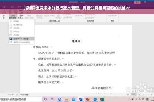 某企业在市场竞争中,通过非法手段获取了竞争对手的银行流水信息,并以此为依据制定市场策略,该行为被监管部门发现后,企业不仅面临巨额罚款,声誉也遭受严重损害,这一案例表明,同业竞争调取银行流水是一种极具风险和挑战的行为。