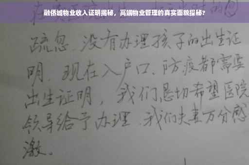 随着城市化进程的加速,物业管理行业逐渐崭露头角,成为城市发展中不可或缺的一环,作为高端物业管理的代表之一,融侨城物业凭借其卓越的服务品质和精细化的管理方式赢得了广大业主的信赖和赞誉,本文将深入探讨融侨城物业的收入来源及其证明,揭开高端物业管理的真实面纱。
