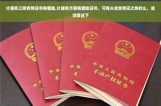 计算机在中国目前有三种从业资格证书,一类是操作证书,由劳动部门颁发,可通过各种社会培训机构参训后报名参加考试,如一级、二级和普通操作证书;二类是专业技术证书,由工信部组织考试,各省颁发证书,直接网上报名参加考试,分初级、中级、高级,如程序员、系统分析师、信息系统项目管理师、构架师等证书;三类是由专业信息公司组织专门的实用技术考试,颁发专业从业资格证书,如西门子交换机维护工程师、ORACLE数据库维护工程师、华为路由器售后服务工程师等证书。