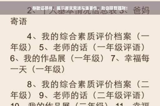 了解存款证明书的定义、用途及注意事项,有助于我们更好地运用这一重要文件,提升个人或企业的竞争力,希望本文能对您有所启发,让您更加深入地了解存款证明书的重要性。