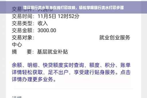 通过本文的介绍,您应该已经了解了如何通过建设银行网上银行轻松打印流水账单,在操作过程中,请务必注意保护个人信息和账户安全,如遇任何问题,请及时联系建设银行客服或前往银行柜台寻求帮助,希望本文能对您有所帮助,祝您顺利打印流水账单,实现个人财务的便捷管理。