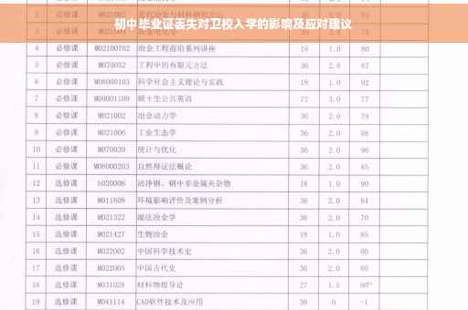 1、对升学的影响:初中毕业证是升学的基本条件之一,虽然卫校相对于高中或大学对学历的要求可能稍微宽松,但初中毕业证仍然是证明学习基础的重要文件,丢失初中毕业证可能会对升学造成一定的困扰。