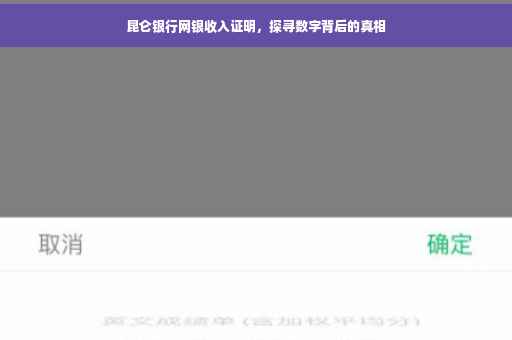 随着互联网的普及和金融科技的发展,银行业正经历着前所未有的变革,昆仑银行作为一家具有深厚背景和广泛影响力的金融机构,其网银服务为广大客户带来了极大的便利,本文将深入探讨昆仑银行网银收入证明的重要性、功能、优势以及实际操作指南,帮助读者更好地了解这一服务。