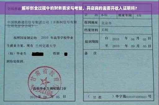 摘要:开店并不一定需要开收入证明,但在创业过程中需要考虑财务要求和考量。创业者需要制定合理的财务计划,确保店铺的正常运营和发展。这包括预测和分析成本、收入、利润等方面,以及考虑资金来源和资金管理等重要方面。还需关注税务法规和财务报表等财务知识,以确保企业的合规性和稳健发展。