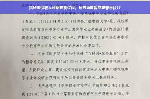 摘要:,,本文揭露了如何炮制虚假的收入证明,这是一个涉及违法犯罪的问题。原告篇将揭示虚假收入证明的制作过程及其背后的动机。通过深入了解虚假收入证明的危害和违法性,提醒公众遵守法律法规,远离此类非法行为。倡导诚信社会,共同维护社会秩序和公平正义。