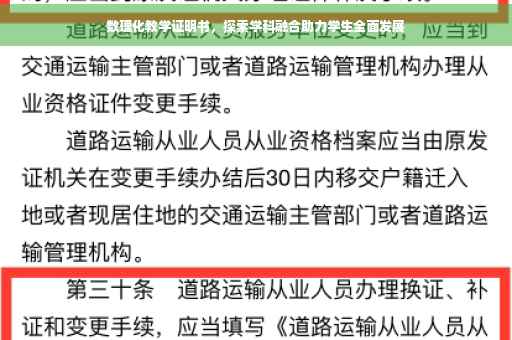 摘要:,,本数理化教学证明书旨在探索学科融合的力量,助力学生全面发展。通过结合数学、物理和化学等多个学科的知识,我们致力于为学生提供一种全面的教育体验。这种融合方式有助于提高学生的综合素质,培养跨学科解决问题的能力,为其未来的学术和职业生涯打下坚实的基础。我们坚信,通过学科融合,可以帮助学生更好地理解和掌握科学知识,促进其全面发展。