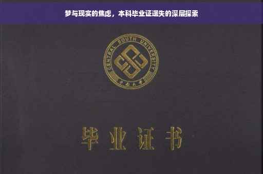 摘要:一场梦引发的焦虑,揭示了个人对学历证件遗失的深深担忧。本科毕业证遗失的背后,可能隐藏着个人对过去成就的怀疑和对未来的不安。这一事件促使个人进行深层思考,重新审视个人成就和价值的认同,以及面对未来的准备。这也提醒人们要重视证件的保管,并学会面对生活中的不确定性和挑战。