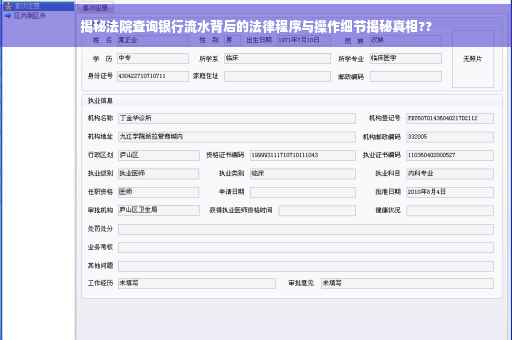 法院查询对方银行流水是司法实践中的重要环节,涉及当事人的合法权益,当事人应了解并遵守相关法律程序与操作细节,确保查询工作的顺利进行,法院将依法保障当事人的隐私权益,确保司法公正与效率。