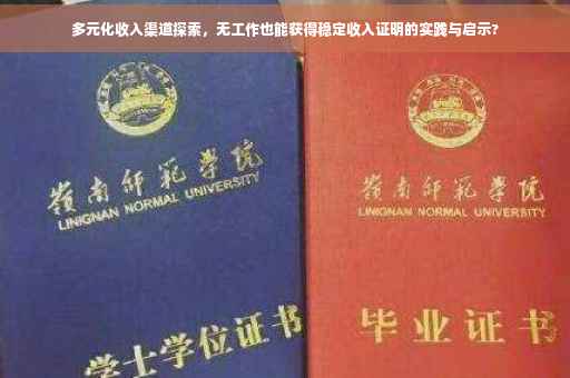 摘要:,,本文将探讨多元化收入渠道的实践与探索,即使没有工作也能获得收入证明。通过深入了解不同的收入渠道,如副业、投资、自媒体等,人们可以拓展自己的收入来源,实现经济独立。本文将介绍一些可行的多元化收入方式,并分享一些成功案例,帮助读者开启自己的多元收入之旅。