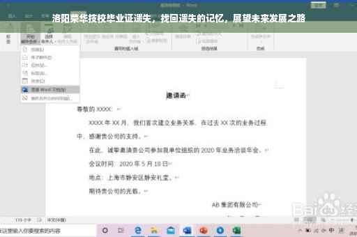 摘要:洛阳荣华技校毕业证丢失,不必过于担心。可以通过联系学校相关部门,提供个人身份证明和学籍信息,尝试补办毕业证或获取相关证明文件。积极更新个人履历和证明自身能力,不因证件丢失而错失未来机会。找回遗失的记忆,重拾信心,继续前行。