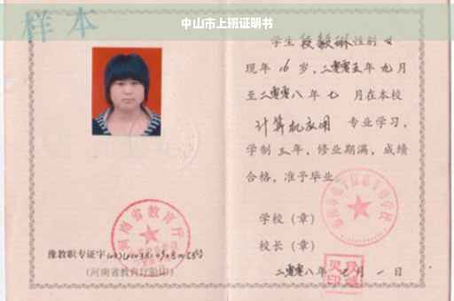 摘要:本文是一份中山市上班证明书的内容。该证明书证实了某员工在该市的某公司或机构的工作情况,包括其职务、工作时间、工作地点等详细信息。该证明书旨在确认员工的出勤和工作表现,并可能作为员工工资、福利或其他相关事宜的参考依据。