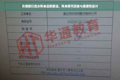 摘要:交通银行流水账单深度解读,强调银行流水账单的重要性。通过细节洞察,揭示账单中的关键信息,如交易金额、时间、账户余额等,帮助个人和企业了解自身财务状况。通过解读账单,可发现潜在的风险和问题,为合理规划和决策提供依据。
