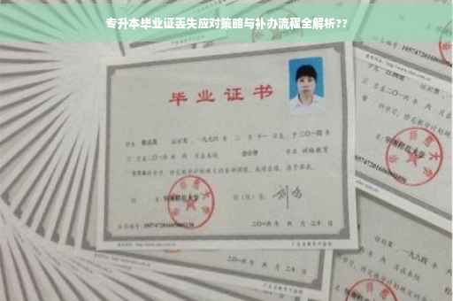 摘要:专升本毕业证丢失,需冷静应对。应立即联系原毕业学校,查询并获取相关补办手续。通常需准备身份证、学历证明等证件,填写毕业证补办申请表。学校会审核资料,确认无误后,会为学生重新发放毕业证。补办流程可能因学校而异,建议提前与学校沟通,确保手续齐全,顺利补办。