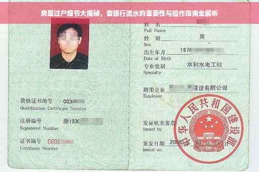 摘要:本文将为你揭秘房屋过户的细节,强调查银行流水的重要性,并为你提供操作指南。在房屋交易过程中,查银行流水有助于了解交易方的经济状况和交易真实性。本文将介绍如何查询银行流水,包括线上和线下渠道,并提供注意事项,以确保房屋过户流程的顺利进行。阅读本文,让你更加了解房屋过户的细节,避免不必要的风险。