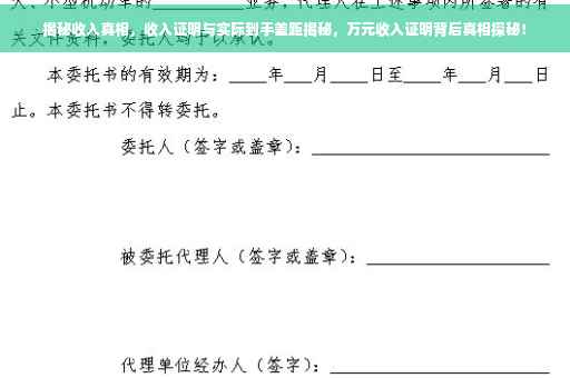 在当今社会,收入证明成为了许多场合的必备资料,无论是申请贷款、租房还是职场晋升,收入证明都是衡量个人经济实力和信用状况的重要依据,有时候我们会遇到一种情况:收入证明上明明显示月入过万,但实际上到手的工资却远远不足,本文将深入探讨这一现象背后的原因,并为大家解析如何正确对待和处理这种情况。