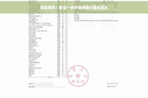 摘要:本文将教你如何轻松查询银行薪资流水。登录银行官方网站或手机银行APP,进入账户明细查询页面。选择查询时间段,通常为最近几个月或一年。查看薪资流水明细,包括工资、奖金、津贴等收入信息。查询过程简单快捷,让你轻松掌握自己的财务状况。