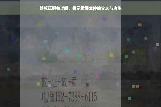 通过以上内容,我们详细介绍了确权证明书的含义、功能、应用场景、办理流程以及注意事项,希望读者能够充分了解确权证明书的重要性,并在实际生活中合理运用,维护自身合法权益,我们也鼓励大家增强法律意识,积极学习法律知识,为构建法治社会贡献自己的力量。