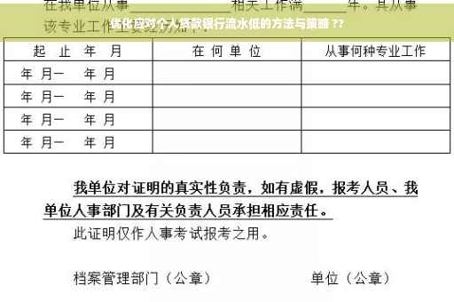 在当今社会,随着消费升级和经济发展的加速,越来越多的人需要借助个人贷款实现各种生活需求,在申请个人贷款时,银行流水作为评估个人信用和还款能力的重要依据之一,往往成为决定贷款成功与否的关键,本文将围绕“个人贷款银行流水低”这一问题展开讨论,探讨如何优化及应对银行流水低的情况,帮助读者更好地理解和解决这一问题。