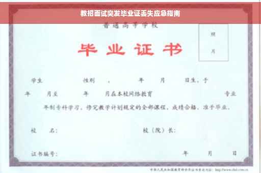 摘要:面临教师招聘面试时,如果毕业证丢失,不必慌张。应立即联系毕业学校,获取相关证明文件。准备一份详细的个人学历证明,包括成绩单等可以证明学历的材料。在面试时,向招聘方解释情况并承诺尽快补齐相关证件。可提供其他有效证件如身份证、学生证等作为辅助证明。务必保持冷静,妥善处理,展现专业素养。