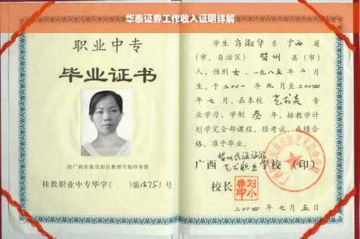 华泰证券的工作收入证明是公司在员工入职后,根据员工的工作表现和业绩,为其出具的一份证明文件,该文件详细列出了员工的基本信息、岗位及职级、收入情况以及社保缴纳情况等,并由公司相关部门负责人签字并加盖公司公章,以确保其真实性,这份收入证明在员工办理个人金融事务、购房贷款等方面具有重要的作用和意义。