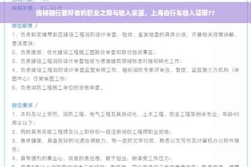 随着健康出行理念的普及和城市交通压力的增大,越来越多的人选择骑行自行车作为日常出行方式,在上海这座繁华的国际大都市,骑行文化更是蓬勃发展,许多骑行爱好者通过参与自行车活动、经营自行车相关产业等途径实现了自己的职业梦想,本文将深入探讨上海自行车收入证明的重要性,以及骑行爱好者如何通过不同的职业路径获得稳定的收入来源。
