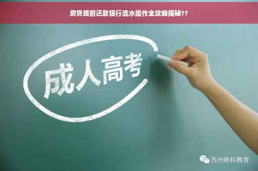 摘要:本文将为你揭示房贷提前还款过程中银行流水操作的全面攻略。从了解银行流水的重要性,到提前还款的适宜时机,再到具体操作流程和注意事项,本文一一详细阐述。阅读本文,将帮助你顺利办理房贷提前还款,避免不必要的麻烦,让你的资金得到更合理的利用。