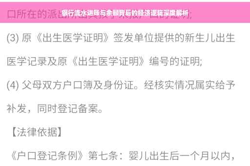 在当今社会,随着金融市场的日益繁荣,银行业务与我们生活息息相关,银行流水进账和余额作为银行业务的重要组成部分,引起了广大民众的关注,越来越多的人开始关心自己的资金流向和账户余额,因为这关系到个人的经济安全和未来发展,本文将深度解读银行流水进账与余额背后的经济逻辑,帮助读者更好地理解银行业务与个人经济生活的关系。